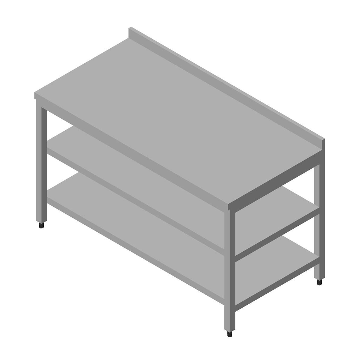 Stainless steel construction. The thickness of top surface : 40 mm, with 60 mm back 40×40 tubular steel legs Stainless steel bottom and intermediate shelf Adjustable legs
